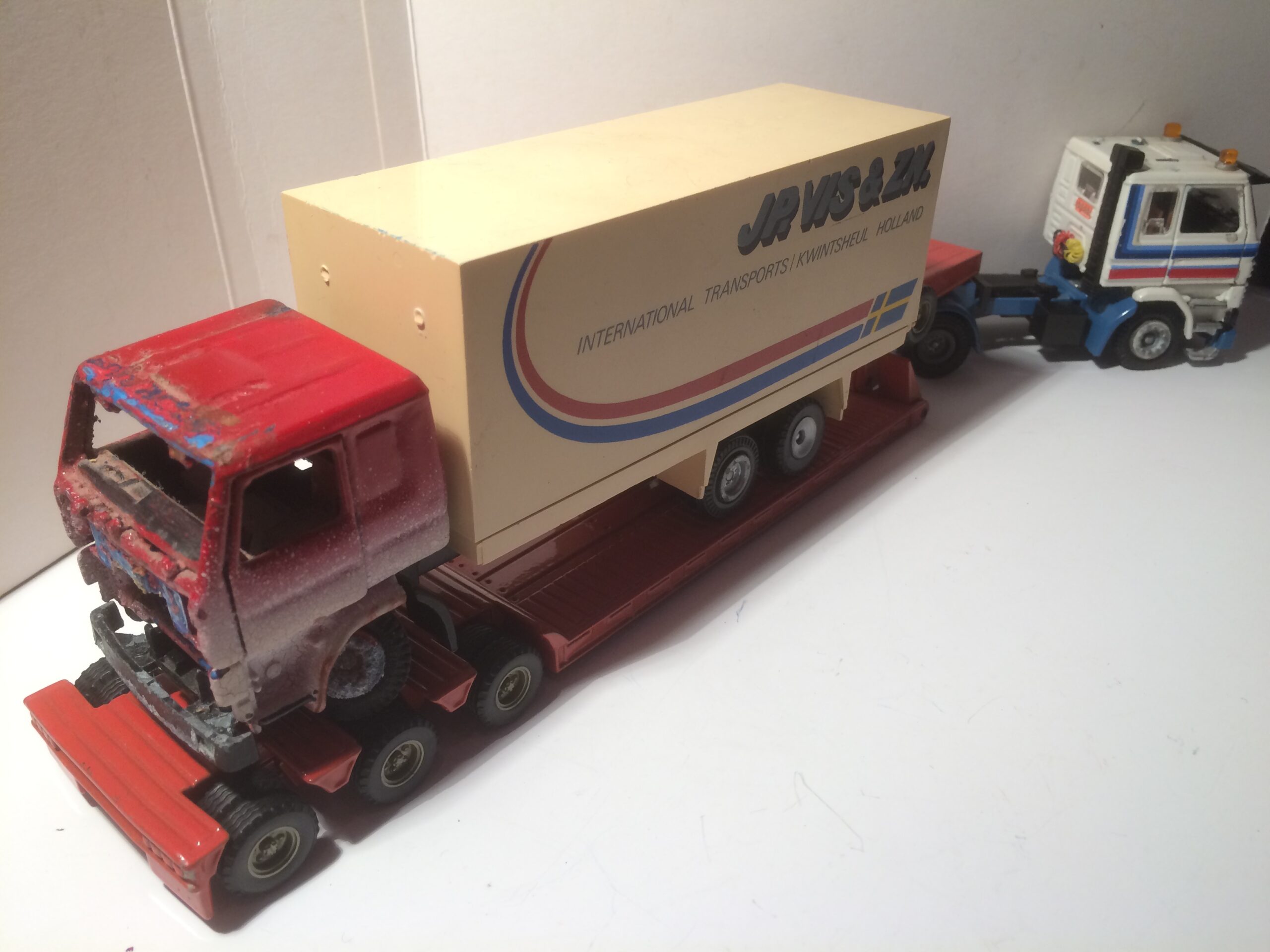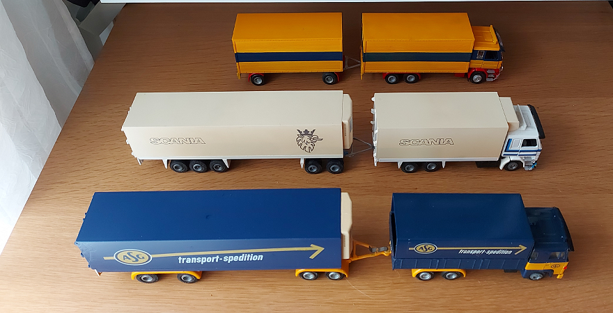 Jeg har ikke gjordt noget i det endnu, men jeg har et enkelt Scania 141 hænger-træk som skal have hele turen på et tidspunkt. Jeg har en plan om trefarvet lakering. Det vil sige en farve til undervogn, en anden til lad og førekabine, og en tredje til presendinger.MVH Kim B S.