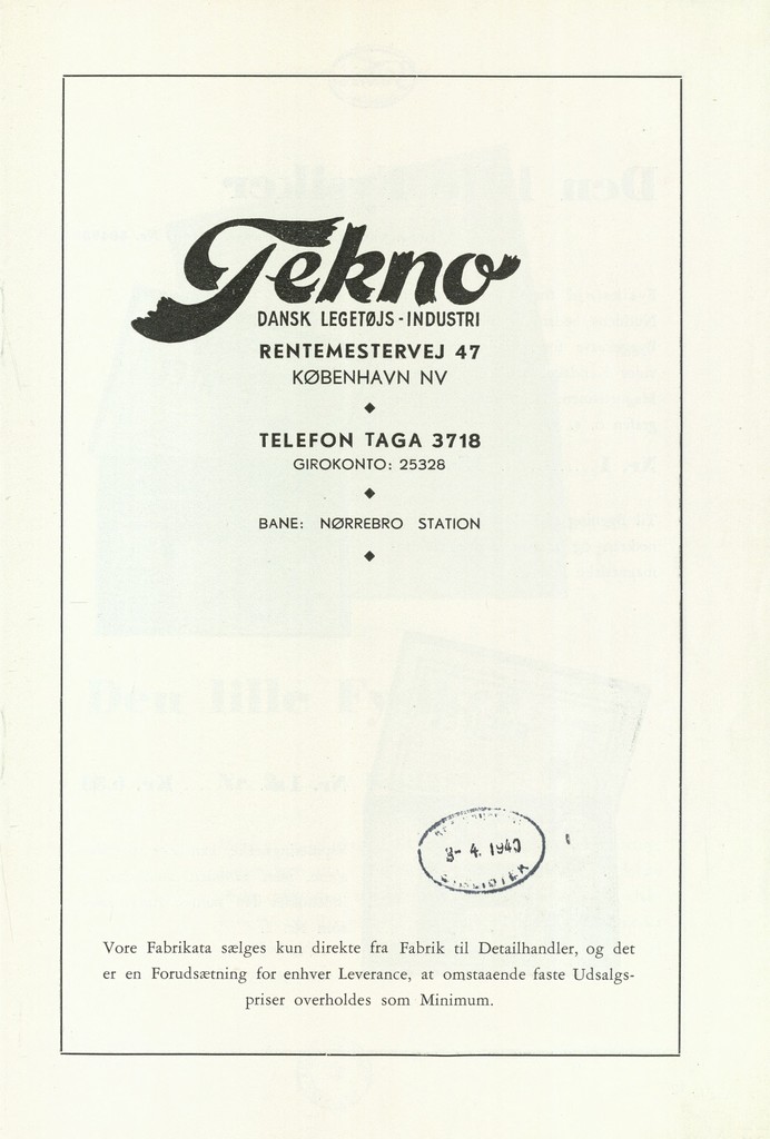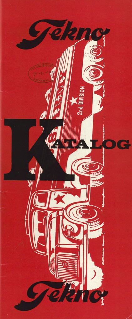 Jubilæumsskriftet fra 1953 kan man også finde på Det kongelige Biliotek (https://www.kb.dk/find-materiale) ved at søge på “DA småtryk Tekno”. Det er selvfølgelig ikke et katalog, men det indeholder en række fine billeder fra Tekno.