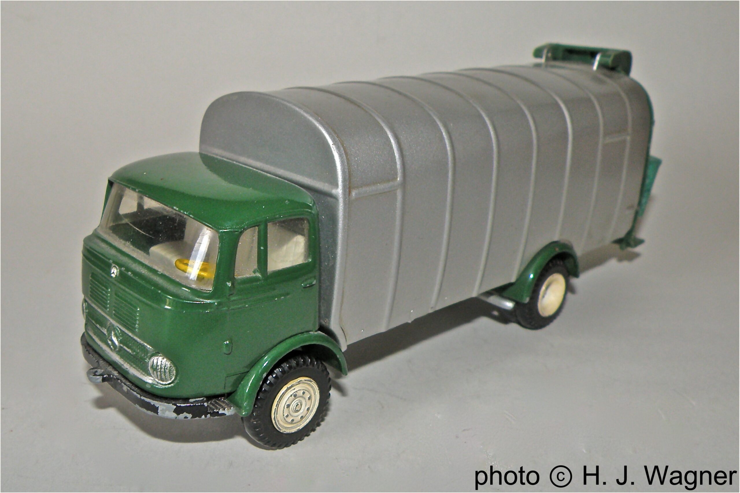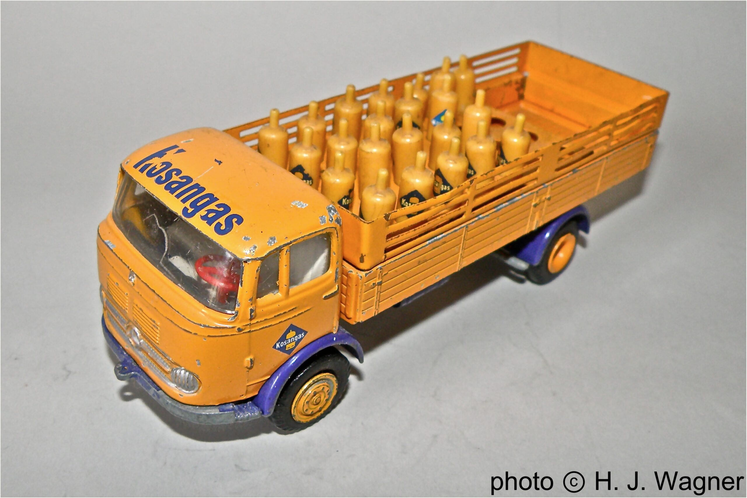 I have seen the MB 0322 Mercedes truck. It´s very commen also in green. But the tranfeer is speciel. Can you put in a picture off the side door logo?The colour off the transfeer look like “Kosan Gas”.