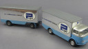ParticipantHi _ Like Matchbox cars. thes culd be a code 2. A locat buisness have put the trasferes on it. It was common in the sixties. I know of at least 4 VW pick-up models in red with ” johns budtransport” on them. John did put these transferes on himself in the early sixties. The fact that it is written in English might let one think of USA, Canada or perhaps England/GB. Perhaps one should look that way to find the correct company?