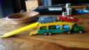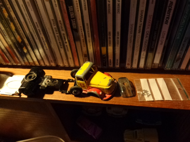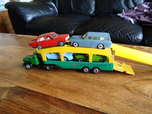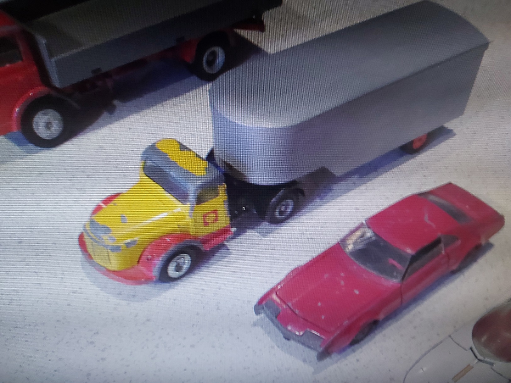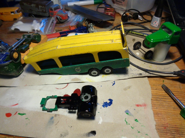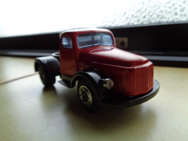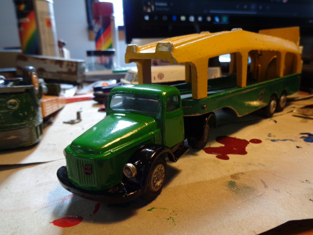 Sættevognen/autotransport-delen er i rimelig stand. Jeg regner med at denne del beholder den originale lakering. En aksel manglede med begge hjul, men det var noget som jeg kunne finde i en af mine kasser med dele.
