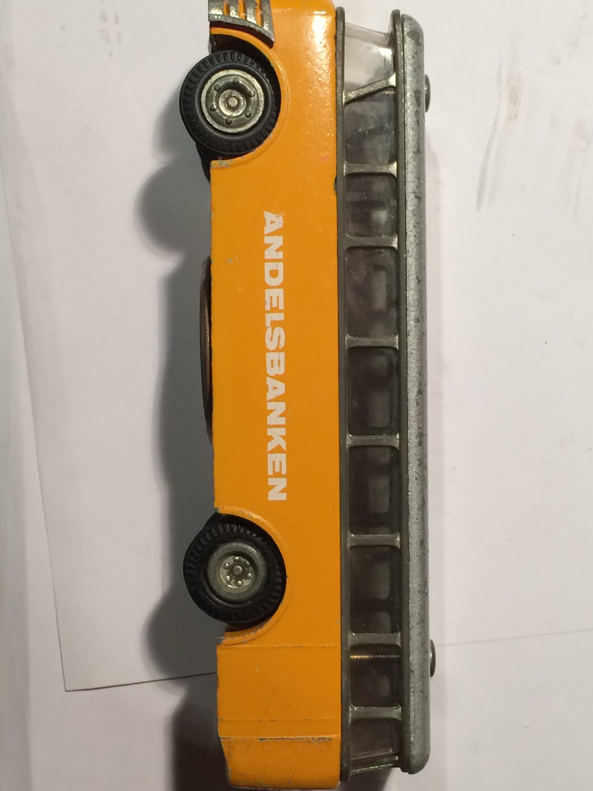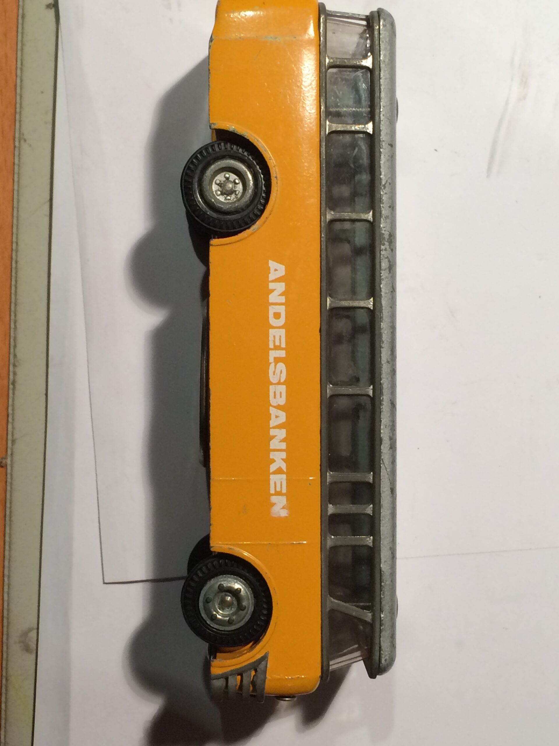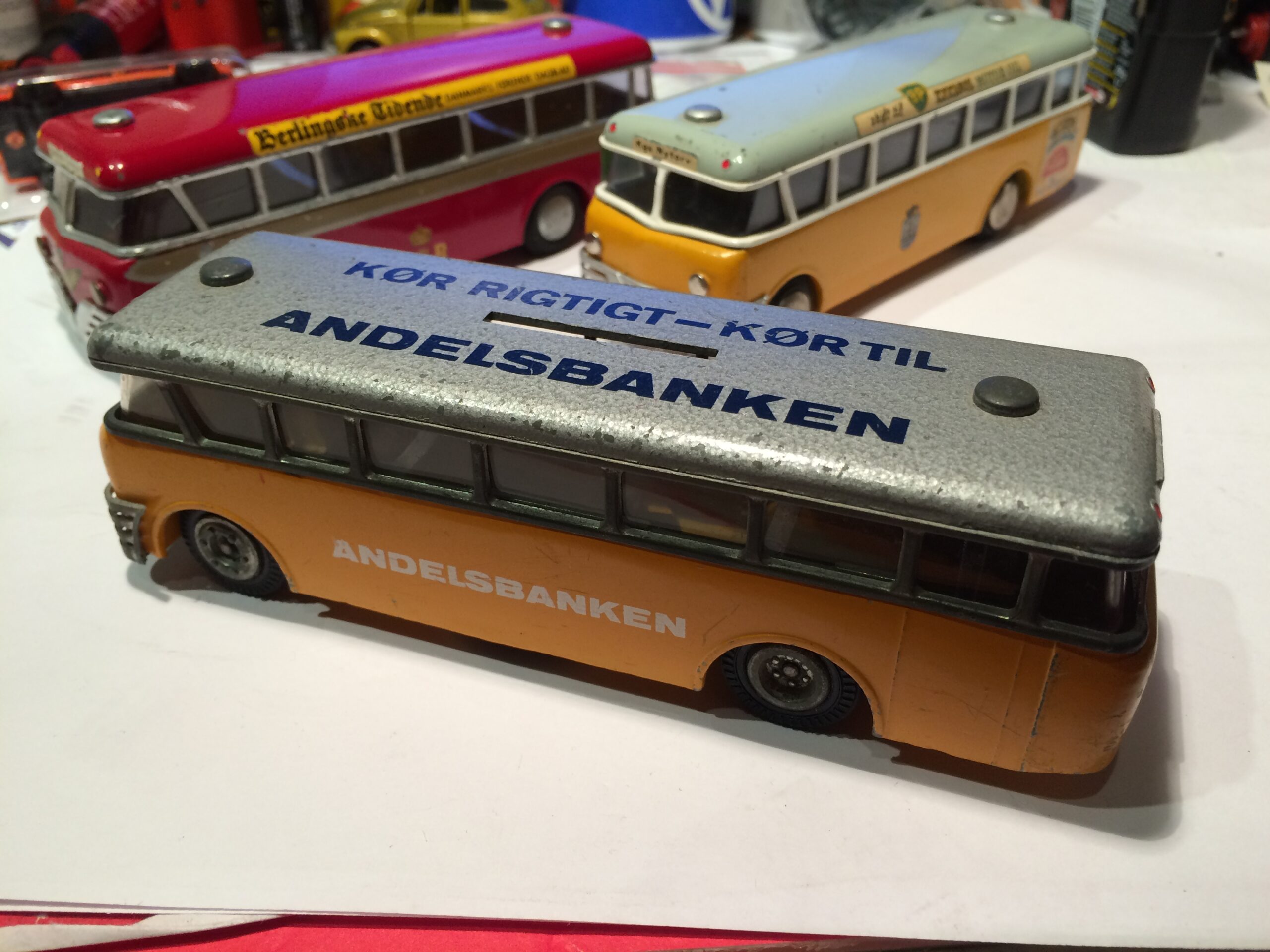 Jeg har ikke busserne ved mig. De var ikke på nær lageret, men er på fjernlageret. Lyder stort hva ! 😉 et par plast kasser i mit værksted, fordi mine busser står til renovering.Står der ikke Tekno normalt, Der hvor spare bussens lås sidder. Og så er navnet jo boret væk.Det sorte nr. i bunden. Mon ikke det er bankens reference nr. Så man kan se hvor bussen er udleveret fra, hvornår og til hvem. Det må de evt. kunne svare på i banken vis den findes endnu.
