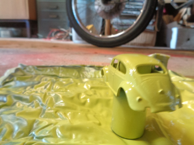Jeg er kommet lidt længre med min VW. Jeg skal gerne indrømme at jeg har sat mig selv på en ret svær opgave med den tofarvede lakering.