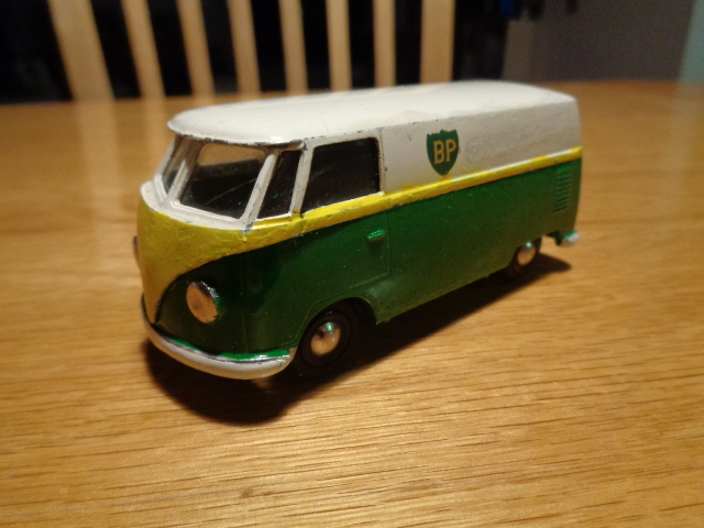 Tekno VW T1 transporter BP Service projekt.Teknobiler og andet gammelt legetøj › Fora › Teknobiler › Tekno VW T1 transporter BP Service projekt.This topic has 2 svar, 1 stemme, and was last updated 5 years, 7 months siden by Kim Bjarne Sørensen.Viser 3 indlæg - 1 til 3 (af 3 i alt)ForfatterIndlæg marts 25, 2020 kl. 01:00 #66339 Kim Bjarne SørensenParticipantHej alle. For nylig købte jeg en Teknobil af ovenstående model af Peter. Jeg har siden forbedret lidt på den, jeg er dog ikke færdig endnu. Det er nemlig planen at den kommer tæt på sit oprindelige udseende, og vil fortsat være en BP Service bil.MVH Kim B S.Attachments:DSC00361.jpgDSC00362.jpg april 4, 2020 kl. 22:16 #66642 Kim Bjarne SørensenParticipantHej alle. Så fik jeg lavet lidt mere på min BP-service vogn. Jeg mangler lige at montere nogen decaler.MVH Kim B S.Attachments:DSC00365.jpgDSC00366.jpg april 12, 2020 kl. 19:44 #67158 Kim Bjarne SørensenParticipantHej alle. Så blev der endelig lidt tid til at gøre BP Service vognen færdig.MVH Kim B S.Attachments:DSC00377.jpgDSC00378.jpgDSC00379.jpgForfatterIndlægViser 3 indlæg - 1 til 3 (af 3 i alt)Du skal være logget ind for at svare på dette indlæg.Log ind Brugernavn: Kodeord: Husk mig Log ind