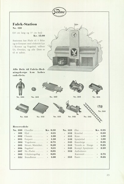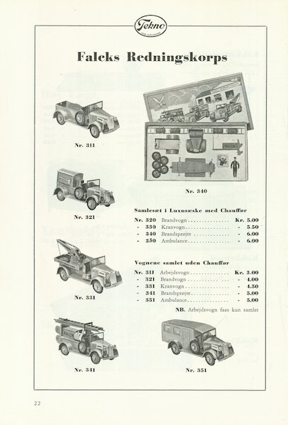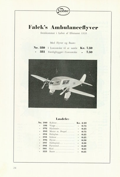 ParticipantJeg har lige fundet et katalog på det kongelige bibliotek — Det siges at være prislisten for 1940 —- Men der er ingen støbte Tekno modeller i…. Sidste side prydes med en blik flyver og teksten …. FREMKOMMER I LØBET AF EFTERÅRET 1939…. Kataloget/prislisten er nok fra 1939 så.