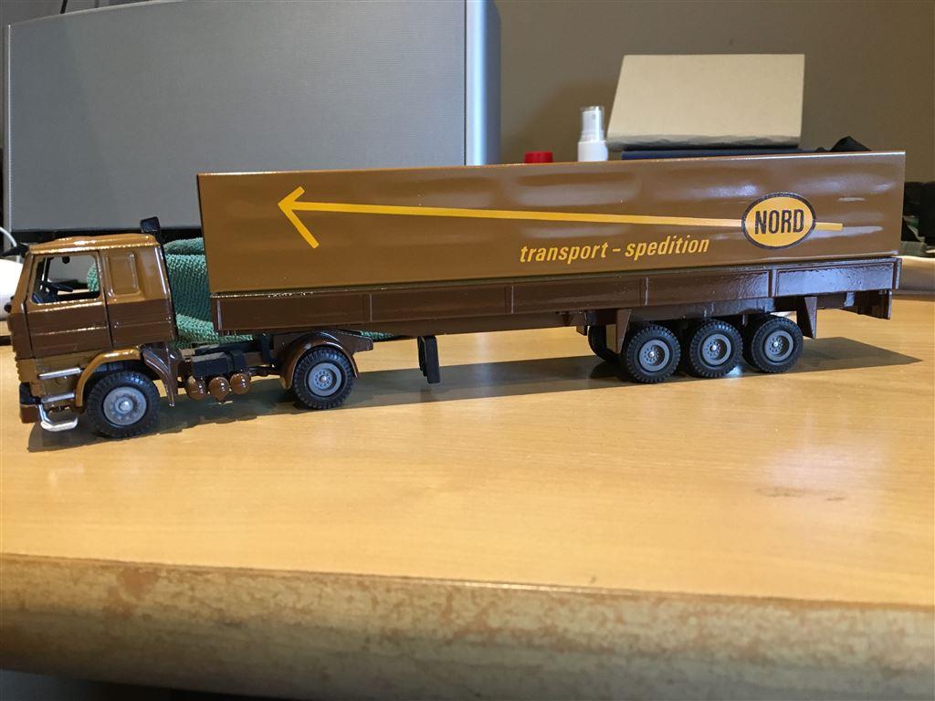 Lige et par pip til emnet her, så lige der er kommet en NL Scania 143M med trailer i Nords brune farve på Tradera, om den er “ægte” eller ej skal jeg ikke kunne sige.
