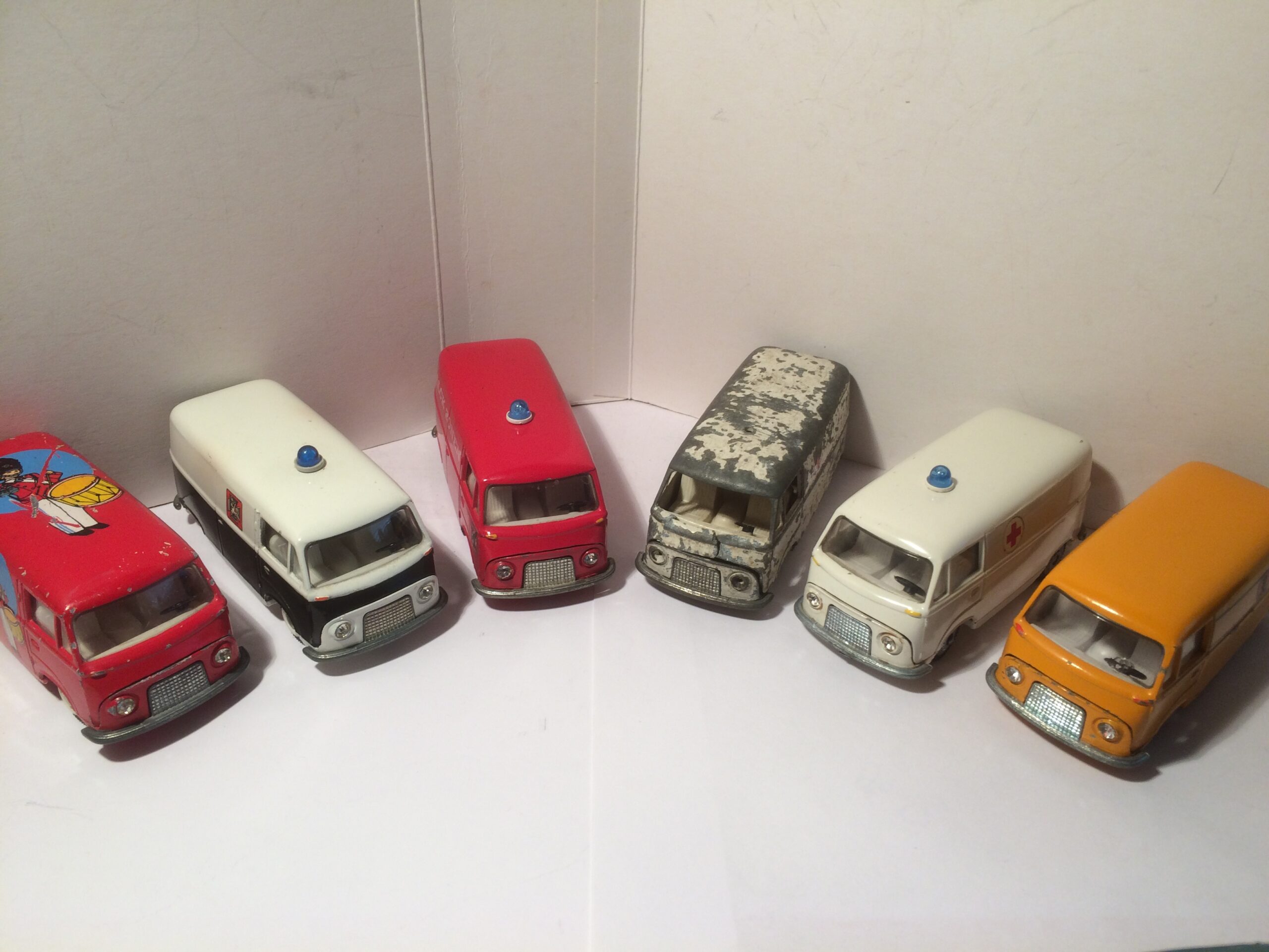 Den røde Falck Zone (plet malet fra Tekno)og den hvide ambulance har jeg vundet i Tivoli i Tekno spillet da jeg var knægt de er helt originale på nær at jeg har lagt nogle kegler fra noget Corgi Toys i den røde Falck Zone bil