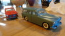 Øverste er en brun Moskovit Varevogn.