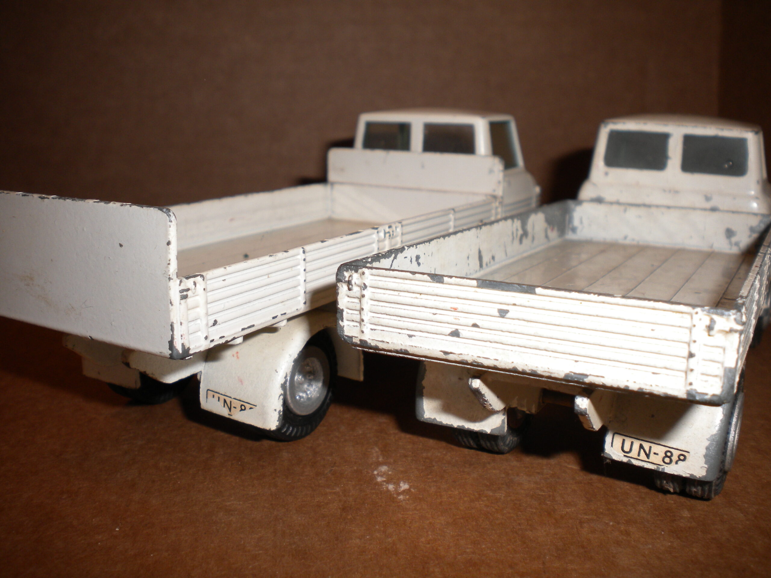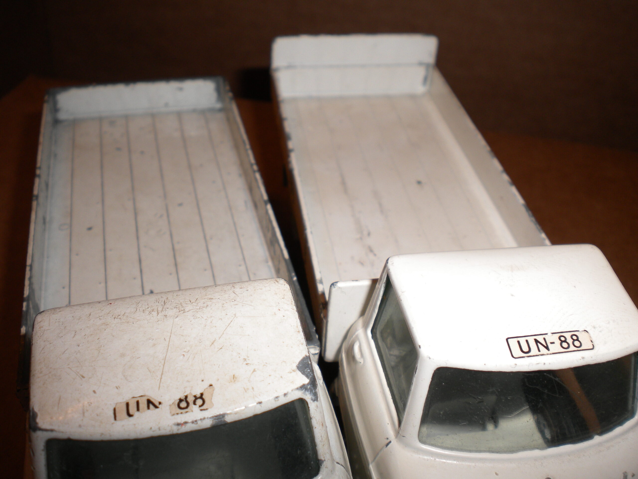 Volvo Express UNTeknobiler og andet gammelt legetøj › Fora › Teknobiler › Volvo Express UNThis topic has 1 svar, 2 stemmer, and was last updated 7 years, 11 months siden by Stroget.Viser 2 indlæg - 1 til 2 (af 2 i alt)ForfatterIndlæg februar 11, 2018 kl. 12:33 #46280 BahamaParticipantHejsa Jeg er kommet i tvivl ang Volvo Express i UN udgaven. Jeg har 2 stk af denne udgave men med forskelig lad/bagklap!? Er det ”normalt”? Er den lavet med begge ladtyper, de ser originale ud med nitter og maling. Er der nogen der ved noget om det?Attachments:Volvo-UN-001-scaled.jpgVolvo-UN-003-scaled.jpgVolvo-UN-004-scaled.jpgVolvo-UN-005-scaled.jpg februar 11, 2018 kl. 14:05 #46285 StrogetParticipantI’ve only seen it with the flat sides to fit the rear cover like this one: https://auctionet.com/en/20006-modellbil-tekno-volvo-tackt-lastbil-un-88-united-nations-vit/images#image_1But the other one looks original to me too! Both shipped and played with…ForfatterIndlægViser 2 indlæg - 1 til 2 (af 2 i alt)Du skal være logget ind for at svare på dette indlæg.Log ind Brugernavn: Kodeord: Husk mig Log ind