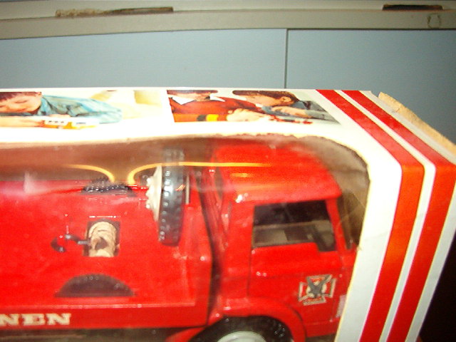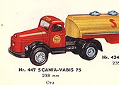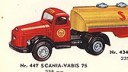 Om tanken er rigtig er noget helt andet. Og måske har man genbrugt billeder i katalogerne ?. Jeg havde en orange Scania lastbil men jeg husker ikke, og kan ikke se på foto, hvilke hjul den havde. Jeg fik en BP tankvogn i julegave af min mormor og morfar. Mener ikke den havde det røde air mærke på. Trækkeren har jeg stadig og den er med 6 møtrik hjul. Det er “sku” længe siden-Jeg har været 5 og dermed er det sikkert omkr. 1965. Min søster kom med storken i 1966 hvilket udløste en stor flot rød scania, med anhænger til drengen — WIIIIHIUUUU… Den gang ville jeg da gerne have haft to søstre —- Meeeeen det ændrede sig 😉