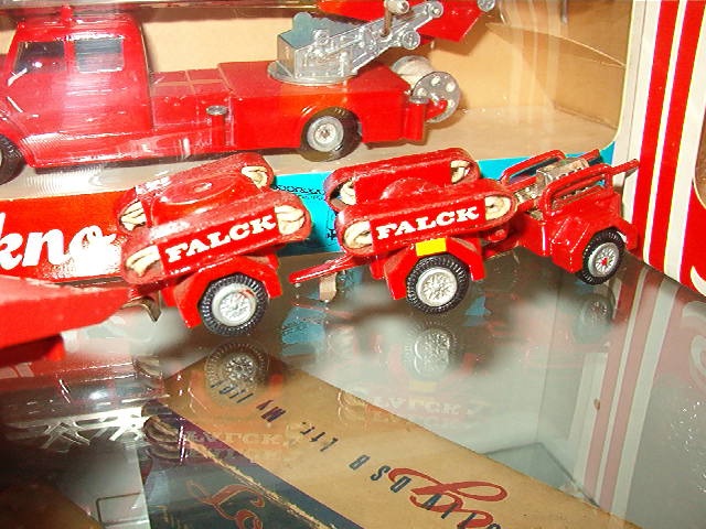 De 3 anhængere er også ombyggede. Disse modeller har været brugt til brandøvelser i Falck. 2 pulveranhængere og 1 bærbar pumpe.
