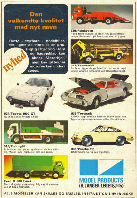 Tag blink – katalog med herbie fra omkr. 1969 (varierende hjul på VW og Amazon) taglygter ses med sokkel.Dansk reklame fra anders and fra 1971.. Tagblikn med sokkel.