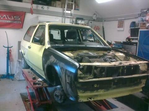 Den gule Polo 1982 (Magnus) er jeg ved at gøre klar til syn