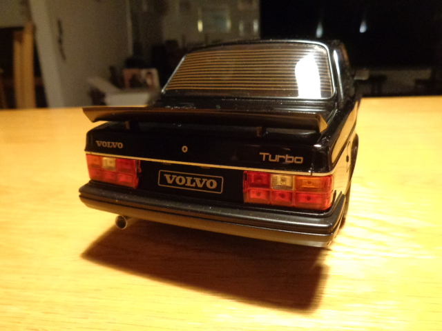 Det var en rigtig fed sort Volvo 242 Turbo med mørktonede ruder bag i, Størrelse 1:18.