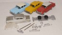 Her er mine 3 Tekno Opel Rekord P1, pluss et kit jeg kjøpte nylig. Planen er å lakkere “kit-P1” mørkeblå med hvitt tak og hvit nedenfor sidelistene.