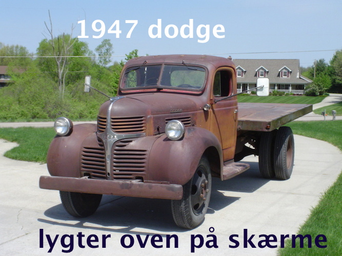 Dodge 1947 – Dodge 1948 – Chevrolet 1949 den kom vidst et par år før – Bedford 1953 og den kom i 1953 så den er generelt udelukket for alle tekno og vilmer bilerne, dørene fulgte iøvrigt også skærmen for neden.