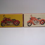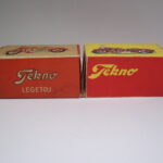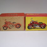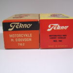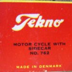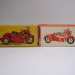 Der findes to typer æsker til motorcyklerne, både til solo og sidevognsmodellen. En ny og en gammel kan man forenklet sige, men der findes også den lidt specielle æske, som alle de tidligere biler også blev leveret i – nemlig den “Märklin” æske, hvor der står Tekno i firkanter på hele æsken. Den er sjælden og jeg har kun et billede af et meget dårligt eksemplar.