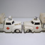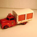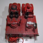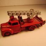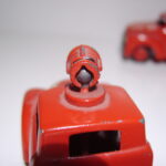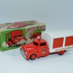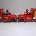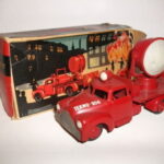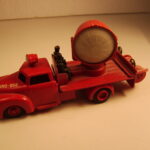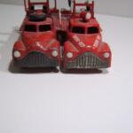 Brandbilerne var noget helt særligt. Flot rød farve, to brandmænd siddende i et lille sæde, en fin slangerulle med rød slange i plastik siddende bagpå bilen på et særligt panel med to små håndtag til fx at “lukke op for vandet”. Brandbilerne er eftertragtede i flot original stand.