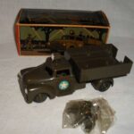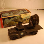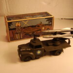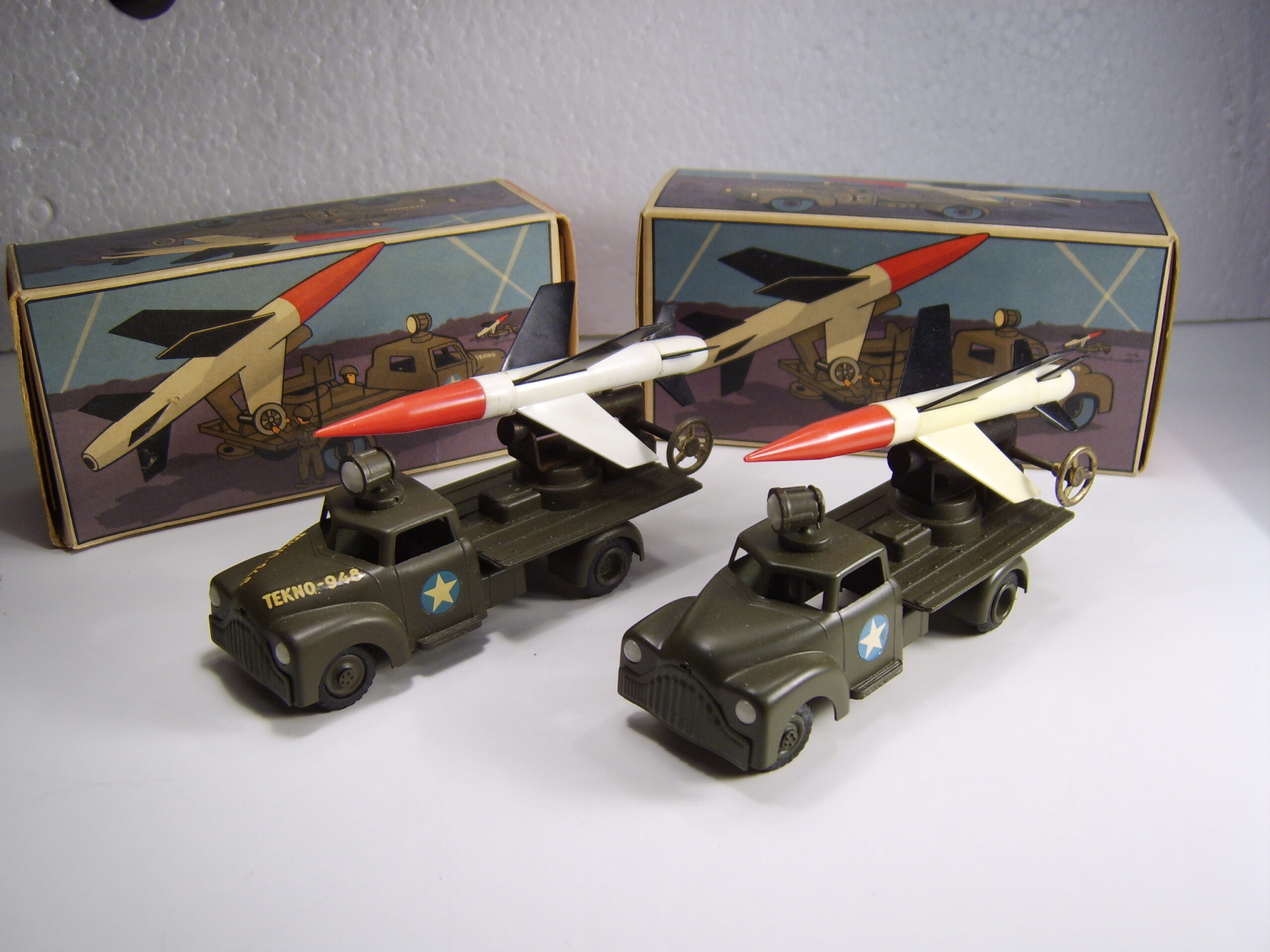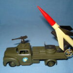 Den mest eftertragtede af militærbilerne – måske ikke så meget bilen, men mere raketten, som ofte mangler. Den har en særlig affyringsrampe i blik, med to små stifter til at holde raketten og et håndtag til at hæve og sænke affyringsrampen. Da jeg var barn, havde jeg bilen, men raketten manglede. Jeg regnede aldrig ud, hvad affyringsrampen var beregnet til, så jeg legede, at rampen var en kanon og stifterne var sigtekorn.