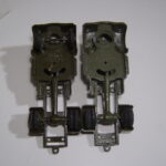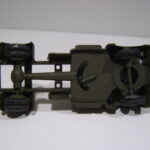 På chassiet er der boret fire huller til montering af laddet. Bagest på chassisrammen sidder trækøjet, som egentlig ikke har nogen funktion, da der ikke er anhængere til bilerne. Hvis der var lavet en trækkrog, kunne man fx have trukket alle Dinky Toys kanonerne efter bilerne.