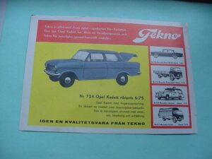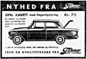 Tekno gav ikke megen omtale til deres model af Opel Kadett A. Den levede ligesom sit eget stille liv i ubemærkethed. Der blev ikke gjort ret meget reklame for den. Faktisk har jeg kun fundet en enkelt reklame for bilen, der ellers måtte vige pladsen for det væld af nyheder, som kom fra Tekno. Den skulle konkurrere med modeller som Jaguar E, Mercedes 220 SEL, Mercedes 300 SL, Morris 1100, VW 1200 og ikke mindst Ford Lincoln og det var kun personbilerne, så var der alle udrykningsbilerne og lastbilerne. Så Opel Kadett blev født i en meget svær tid.