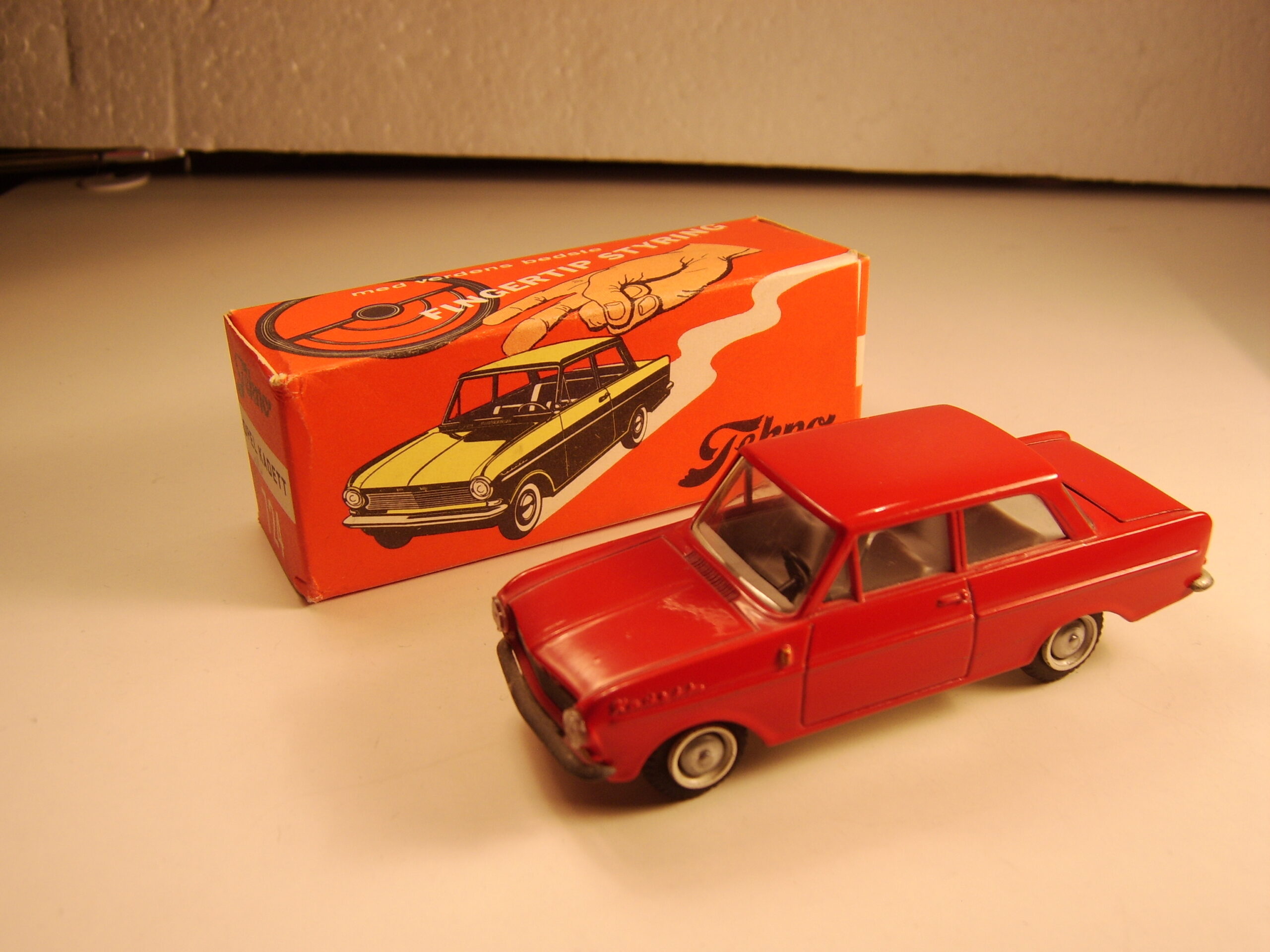 Først og fremmest ligger man mærke til det helt usædvanlige styretøj, som blev lanceret som “Finger – tip – styring”, som dækker over, at man kan vippe bilen fra side til side og den dermed drejer. Det er et super godt system og det virker perfekt uden at blive slidt. Jeg tror systemet som Opel Kadett har arvet fra DKW er et af de første styresystemer på en modelbil.