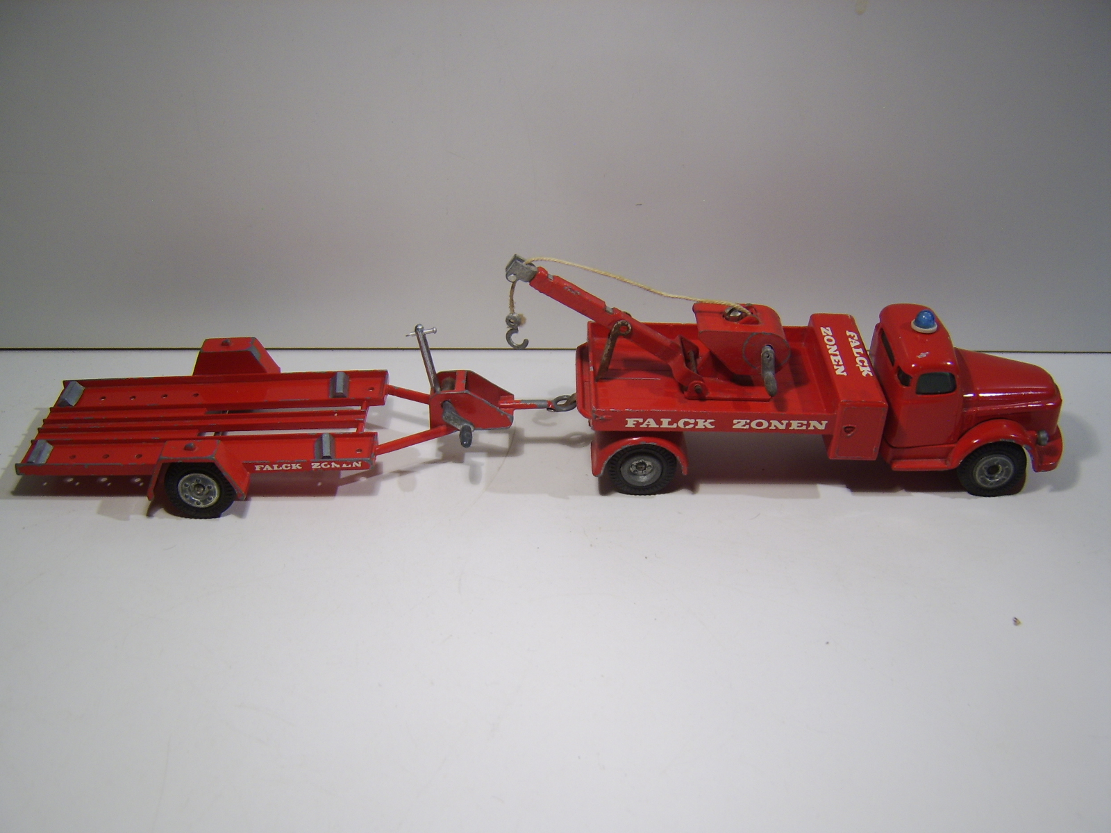 100 % original uden fejl eller mangler. Flotte decaler, hele lygter og den sjældne slags på stilk, fin rude, ingen fejl på kranarmen. Ligeledes en flot hænger med alle fire stopklodser i behov.