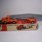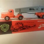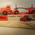 Scania betonelementbilen er lidt af en gåde, lidt ligesom Scania autotransporteren, men den adskiller sig alligevel ved at være lidt mere organiseret. Jeg tror kun Tekno har lavet en udgave af betonbilen og det er den gode gamle orange Scania – Vabis 76 med de umalede hjul med 6 møtrikker. Den er formentlig lavet et sted mellem 1963 – 1964.