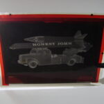Scania – Vabis Honest som grundbil er beskrevet ganske godt under artiklen med stigebilen og entreprenørvognen, så jeg vil undlade at beskrive det hele en gang til, men blot henvise til artiklerne med disse modeller. Det der adskiller den fra stigebilen er selve affyringsrampen eller skinnen. Alt andet på bilen er det samme som stigebilen og entreprenørvognen. Eneste forskel er reservehjulet bag førerhuset. Hele konsollet er nøjagtigt det samme som til stigebilen. Man kan sige, at det kun er skinnen som raketten affyres fra, der er forskellig. Den er lavet i blik og er meget solid. Selve mekanismen der styrer affyringen er svær at lave så det holder. Men det kunne de på Tekno. Man lader affyringsrampen ved at trække at håndtag tilbage. Man udløser mekanismen med det højre håndtag og raketten affyres. Der er smæk på og Tekno har brugt hele tre fjedre for at få det til at fungere. En fjeder holder udløsningshåndtaget stramt. En trækfjeder spændes og en lille fjeder midt i rampen afbøder slaget, så mekanismen ikke tager skade. Det er en fin detalje. Der skal meget til for at ødelægge denne tekniske flotte løsning.