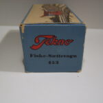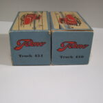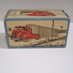 Til flyttebilstraileren kender jeg til to forskellige æsker. Den ene ligner ovenstående, men har både fisketraileren og flyttetraileren som motiv. Fisketraileren har naturligvis nr. 453 og flyttetraileren nr. 454 på endeflappen. Den anden udgave er en rød æske med motiv af flyttetraileren.