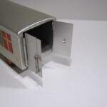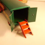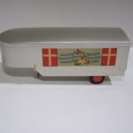 Traileren er flot lavet. Den består af et midterstykke, som foldes sammen og punktsvejses/trykkes sammen med en bund og en top. Hvis man kigger godt efter har den 3 prikker på ydersiden i hver side, hvor den har fået et slag, som holder dem sammen. Den har 2 løse bagdøre og et håndtag. Hjulophænget er ligeledes af blik og punktsvejst fast på bunden. Modsat traileren til lastbilerne har denne kun et lille hul til spidsen på bilen og så har den en smart støttefod bukket op i et stykke metaltråd. Støttefoden gør at traileren står op, når den henstilles.
