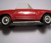 Egentlig en meget meget flot konstruktion, men dørene er svage. Sætter sig nemt fast og knækker af. Billedet viser hvor svag dør hængslet er konstrueret. Denne bil er ret slidt, men selv på mint biler knækker døren meget nemt af. Derfor undlad at åbne dørene, hvis du har en flot model.