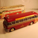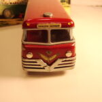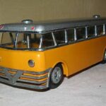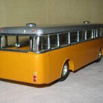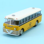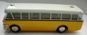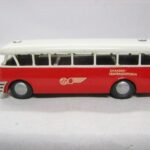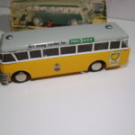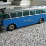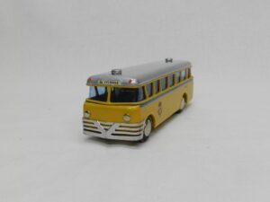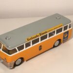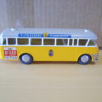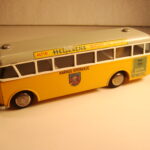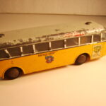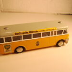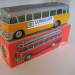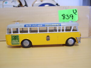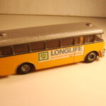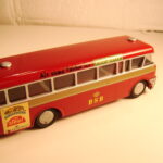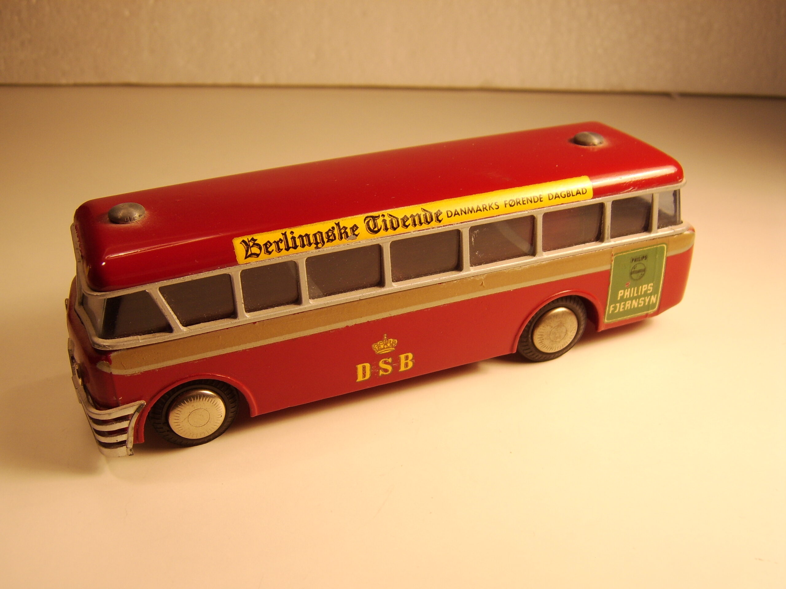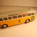 Bemærk, at det den gamle udgave med pladehjul. Dette er min egen bus, som jeg købte fra et dødsbo i Sverige. Ejeren, som var død havde arbejdet i en busrelateret forretning og havde fået den som firmagave. Den havde stået på hans kontor indtil han døde, uden at børnene fik lov at lege med den.