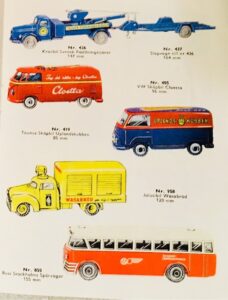 I 1959 er det de samme modeller, som leveres, jf. en lille brochure – dog er navnet Postdiligens ændret til Postbuss og prisen er nu 9,10 skr.