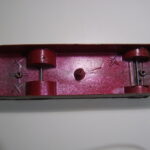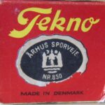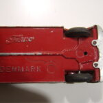 Kigger vi udefra på bunden, har den graveret logoet “Tekno Danmark” og en kardan + et bagtøj- og et fortøj. De fire ca. 6 mm runde fordybninger er mærker fra udstøderne i støbeformen.