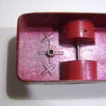 Men et blik ind i bunden viser tre små kryds – et bag forhjulene og et bag forhjulene. Det er forstærkninger til udstøderne i formen som er tilføjet fordi bundene er blev deformeret – de har været for tynde i godstykkelsen. Der er kun tre kryds, fordi der kun var tre udstødere, hvilket man kan se af det manglende mærke uden på bunden.