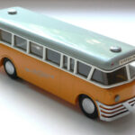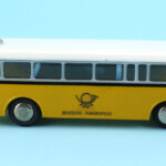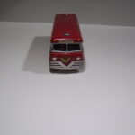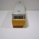Lad os vende tilbage til beskrivelsen af selve bussen. Den har den underlige opbygning i lag, som Spon indimellem praktiserede. Det fleste modelbusser, har en under og en overdel, men Spon valgte at dele bussen i tre dele, som kun har gjort den dyrere. I min artikel om Ford Taunus FK 1000 lufter jeg den teori, at det kunne være fordi besparelsen kunne komme ved at bilen nemmere og billigere kunne males i flere forskellige farver uden at man skulle dække så meget af.