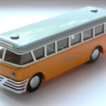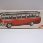 Men da bussen er fra 1955 er den tilpasset Teknobilerne fra den tid og de var typisk fremstillet i størrelsesforholdt ca. 1:50. Bussen passer perfekt til en VW 1200, nr. 804, en Opel Rekord Olympia eller en Renault 4CV.