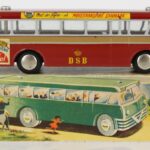 Bussen som model kom på markedet i slutningen af 1955, hvor det ældste materiale, som jeg har støvet op omkring modellen er fra en annonce i Legetøjstidende, hvor D.S.B- og strøgbussen præsenteres som nyhed. Tekno bruger betegnelsen “rutebil D.S.B” og “strøgbus“. Prisen var 8,50 kr. Herefter gik det også stærkt med at reklamere for bussen. Man kan godt fornemme på Tekno, at de havde fat i noget, som var usædvanligt indenfor legetøjsbiler på det tidspunkt.