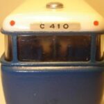 Nedenfor den velkendte nyeste model i farven lyseblå med sølvgråt hammerlakeret tag, umalet frontgitter og ruderamme, samt hjul med 6 møtrikker. Af en eller anden underligt grund er der påsat en decal bagpå C410, som ikke sidder som ruteskilt, det er den for stor til, men nærmest som nummerplade. Forklaringen er formentlig, at alle tag på det tidspunkt var malet sølvgrå som standard og man dermed kunne undgå, at holde dem adskilt fra hinanden. Det er dog et fåtal, som har denne nummerplade, men fænomenet er også set på andre busser.