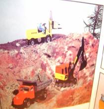 Annoncen ovenfor er fra Teknos katalog fra 1968-69. Det er helt tydeligt, at den sidste del af Tekno fødekæden ikke kunne følge med, i dette tilfælde reklameafdelingen. Blokvognen er tydeligvis en Scania og Åkerman gravkoen nr. 610, men teksten fortæller, at der er tale om en Volvo og en Åkerman nr. 700 – som jo også ses ovenfor på fotografiet. Billedet stammer fra et tidligere katalog og Tekno har simpelthen ikke nået at få det lavet om, men bilerne var klar til levering. Det blev så rettet er de efterfølgende kataloger. Hvad en Hyster truck laver i en grusgrav vides ikke, men det er jo en anden historie.