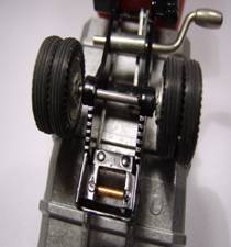 Ladet kan tippe ved hjælp af et håndtag på venstre side af bilen, hvor en 2-delt arm får ladet til at tippe. Når ladet er i yderste position låser det.