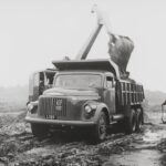 Det er en lidt underlig bil uden skærme og den ser lidt halvfærdig ud, men faktisk kan man godt finde billeder på Internettet af både Volvo tipbiler med et mere almindeligt lad og også denne, som er fremstillet til at arbejde uden for vejene. På fx byggepladser, i grusgrave med videre.