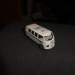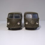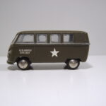 Corgi Toys fremstillede ligeledes en rigtig fin VW både som kleinbus, varebil og som pick-up i rigtig god kvalitet. Den kom dog først i 1960.erne. Der kom en neutral kleinbus i grønbeige og så denne militærbus.